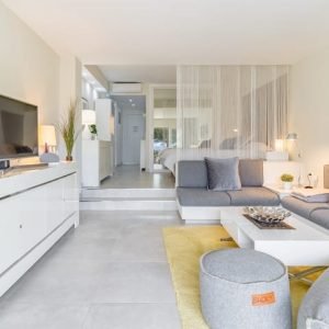 Sobre este espaçoO estúdio em Miraflores tem capacidade para 2 pessoas. O studio é confortável, amplo e tem 53 m². Tem vista para o mar e para o jardim. A propriedade está localizada a 100 m do Miraflores Tennis Club & Restaurant, a 400 m da estação rodoviária, a 450 m do supermercado Miraflores, a 560 m da praia de areia, a 600 m do campo de golfe Miraflores, a 15 km do parque aquático Aqua Mijas e a 35 km do aeroporto de Málaga. A casa está situada em um bairro encantador. A acomodação é equipada com os seguintes itens: móveis de jardim, terraço de 10 m², máquina de lavar, ferro de passar, secador de cabelo, varanda, ar condicionado, piscina comum + infantil, smart TV com canais internacionais. Na área da cozinha, são fornecidos geladeira, cooktop de indução, micro-ondas, liquidificador, espremedor, pratos/talheres, utensílios de cozinha, cafeteira, torradeira e chaleira.