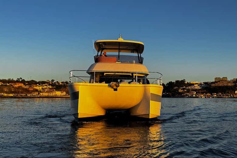 Na hora indicada nos encontraremos no cais D da Marina da Afurada. Lá, subiremos em um catamarã de 15 metros de comprimento e começaremos a travessia pela cidade do Porto.
